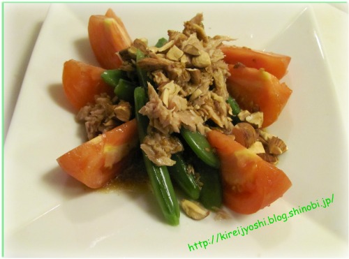 【栄養満点トマトエンドウツナアーモンドサラダ】