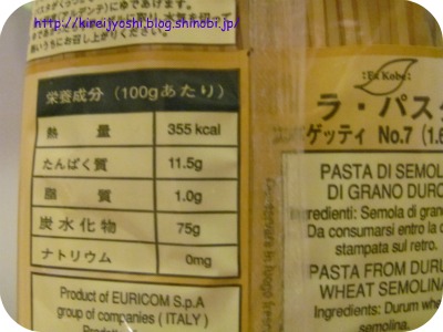 パスタを100gにした場合のカロリー